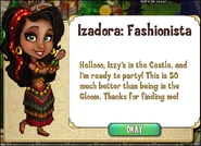 Izadora (Isadora in some coutries), aka Izzy, is a gypsy who was trapped in the Gloom. Contrary to most characters rescuing her is not part of any quest, so her arrival may vary from player to player.